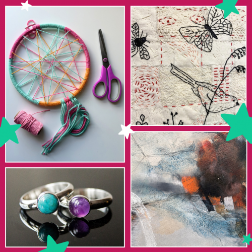 The main entrance is level access. On your right, there is a button to open the automatic door to the Café Bar. Head forwards into the Gallery, turn right up the ramp and proceed through two sets of double doors (please note there is no automatic button to open these doors). Please be aware that there are low ceilings and low door frames in this area. Turn right and proceed up the stairs (six steps, a landing, and then seven steps). Proceed through the doors straight ahead, then another set of doors straight ahead, and turn right through another door into the Art Studio.