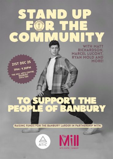 Our Comedy Night Fundraiser brings together top tier talent, a brilliant audience, and a cause that matters, The Banbury Larder. An organisation designed and created to support the people of Banbury during the ongoing cost of living crisis. Whether it’s through their Community supermarket, Connection Cafe or Job Club, The Banbury Larder is there to make sure that no one goes unseen.