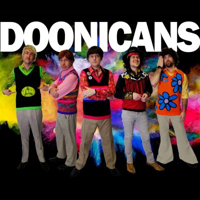Put on yer finest knitted gladrags, style your barnet, put on your dancing shoes and bring your finest singing voices, as we cordially invite you to witness the Greatest Show On Earth (in tank-tops). Founded in Barnsley Rock City in 2006 by their outspoken and energetic ringleader, Scott Doonican, The Bar-Steward Sons of Val Doonican are on a mission! Far from being your typical folk ensemble, this cult-like collective of like-minded knit-wear enthusiasts are determined to follow in their spiritual father’s immortal footsteps and keep his legacy alive. Scott and his brothers-from-other-mothers, Alan Doonican, Dave Doonican, Mo-Jo Doonican and the Rt. Rev. Jeremiah Rickenbacker Doonican III, have quite the talent for Bar-Stewardizing other famous people’s songs with new satirical comedy lyrics, on folk instruments. To complete their outrageously understated image, the Doonicans have become instantly recognisable in festival fields and venues up and down the country for their immaculate hair and their stylish choice of sexy knitwear, and instantly memorable for their lairy, no-holds-barred, anarchic live shows.